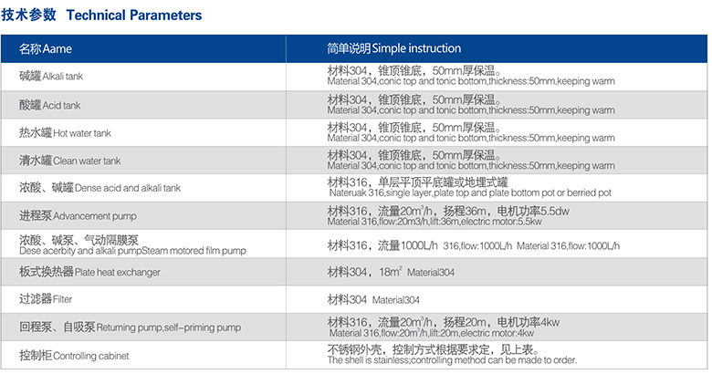 系統可單獨進行酸洗、堿洗、熱水沖洗等工序,也可根據需要編制特定的清洗程序進行全自動的清洗;不僅能有效的將設備清洗干凈,而且還能控制微生物生長;同時可根據客戶要求配置半自動和全自動控制系統。