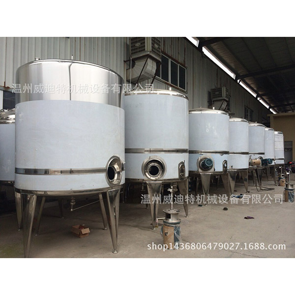 調配罐又名拌料缸、混料缸,有節能、耐腐蝕、生產能力強、清洗方便、結構簡單等優點,主要用于乳品和食糖及其它元素和各種藥物再配合后進行攪拌均勻作用,是乳品、飲料、制藥廠不可缺少的設備。采用材質為SUS304或316不銹鋼。