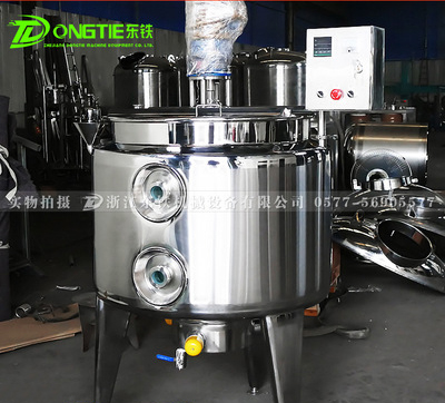 Electric heating mixing tank for the open structure, with automatic heating temperature control, insulation, mixing function; fast heat transfer, to adapt to large temperature difference, easy to clean and so on. Widely used in food (milk) products, pharmaceutical, cosmetic, beverage, oil, chemicals, pigments and other industries as heating, mixing or disinfection treatment. Particularly suitable for non-steam heat source units and scientific research institutions of small, pilot use. And according to the process need to use fully enclosed structure.